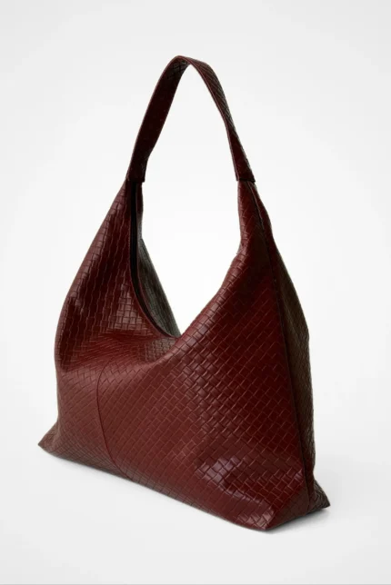 Örgü Desenli Büyük Boy Salaş Omuz ve Tote Çanta – Bordo