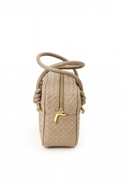 Botte Örgü Desenli El ve Omuz Çantası – Bej
