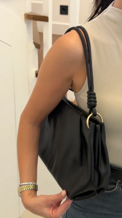Büzgü Pili Detaylı Mary Kadın Kol ve Omuz Çanta – Siyah
